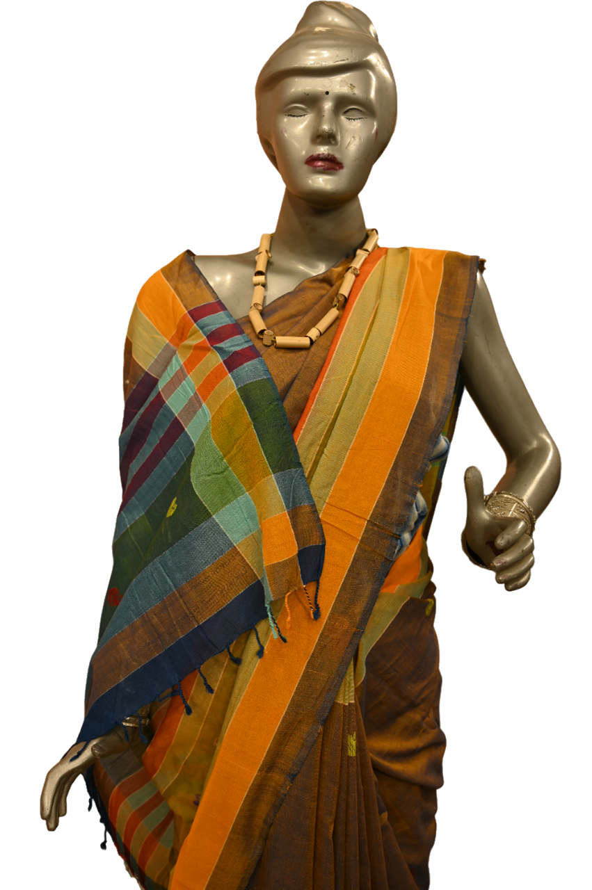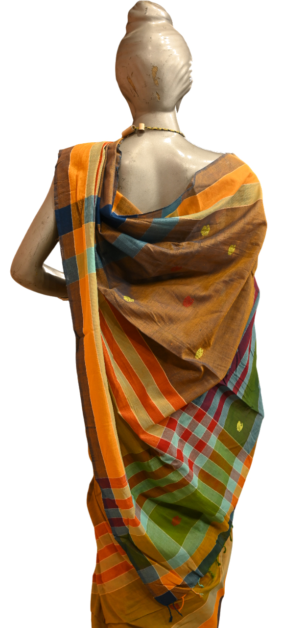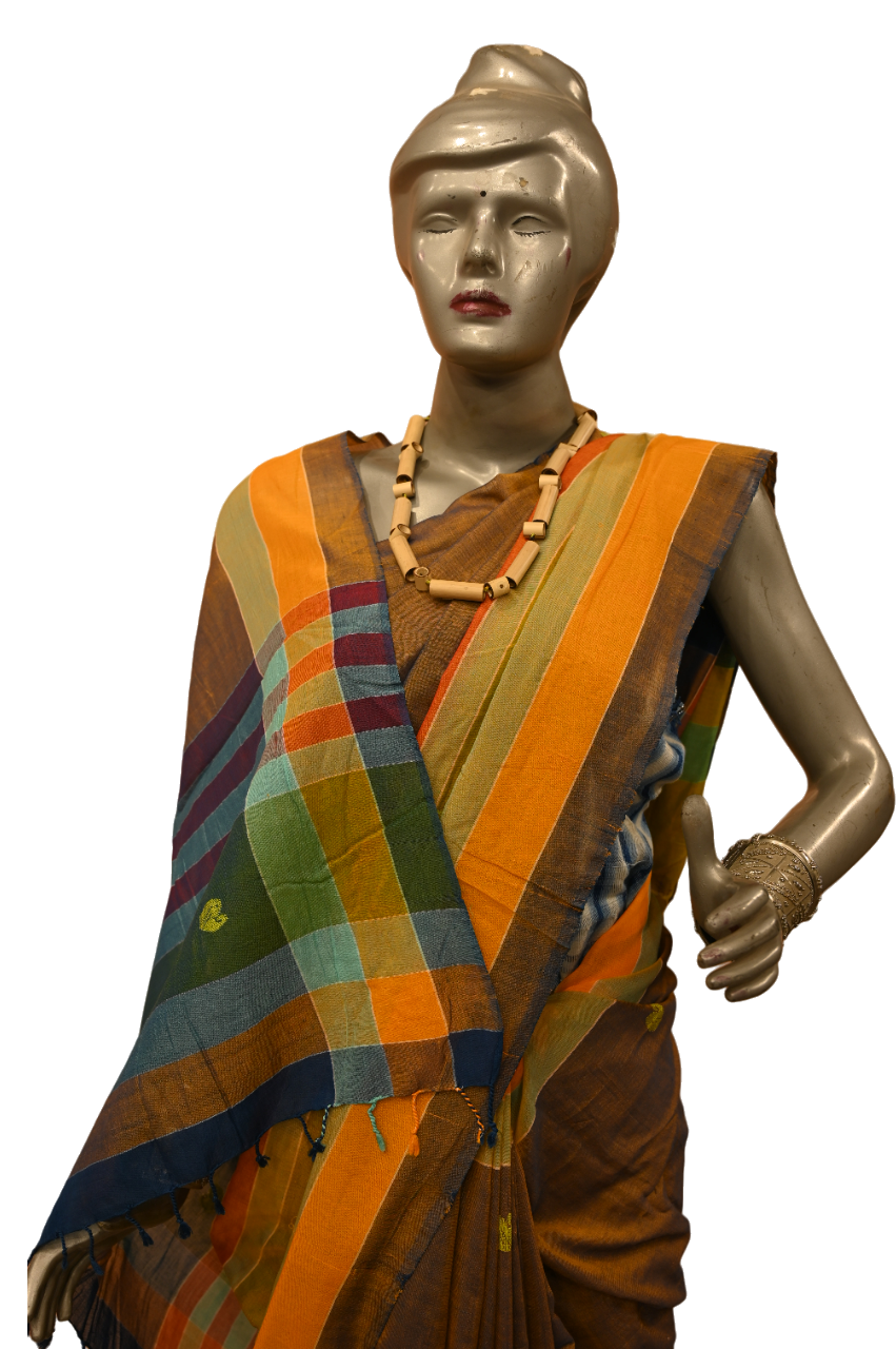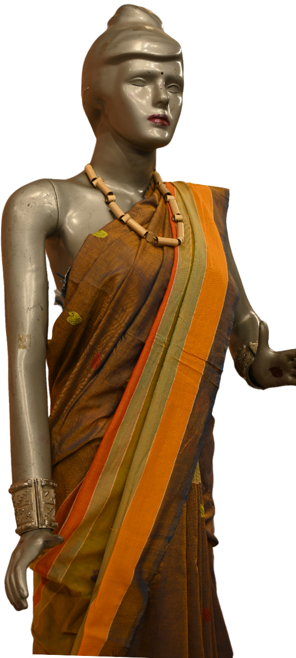 • Mercerized cotton saree weaved by weavers of Anwa cluster by skillful combination of warp and weft on a handloom.
