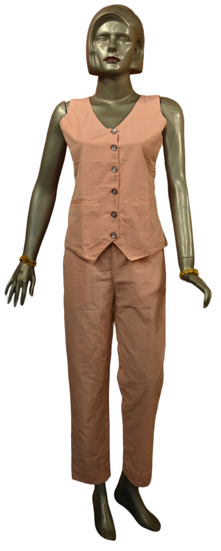 Ace your everyday looks with the Co-ord set! The set features pants and a jacket with buttons. The pants have a smooth waistband in the front, and a soft elasticated back for the perfect fit. We have used the best quality fabric for this set, and have developed special technology to make sure that it wrinkles less so you can easily go through the day looking as polished as you did in the morning! The premium fabric is colour bleeding resistant and machine washable thereby making it long lasting and easy to maintain.