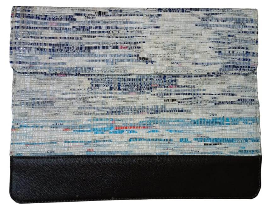Upcycled plastic folder bag with premium quality rexin to strengthen its quality. Use it as a document folder or basically to keep anything that you need handy.